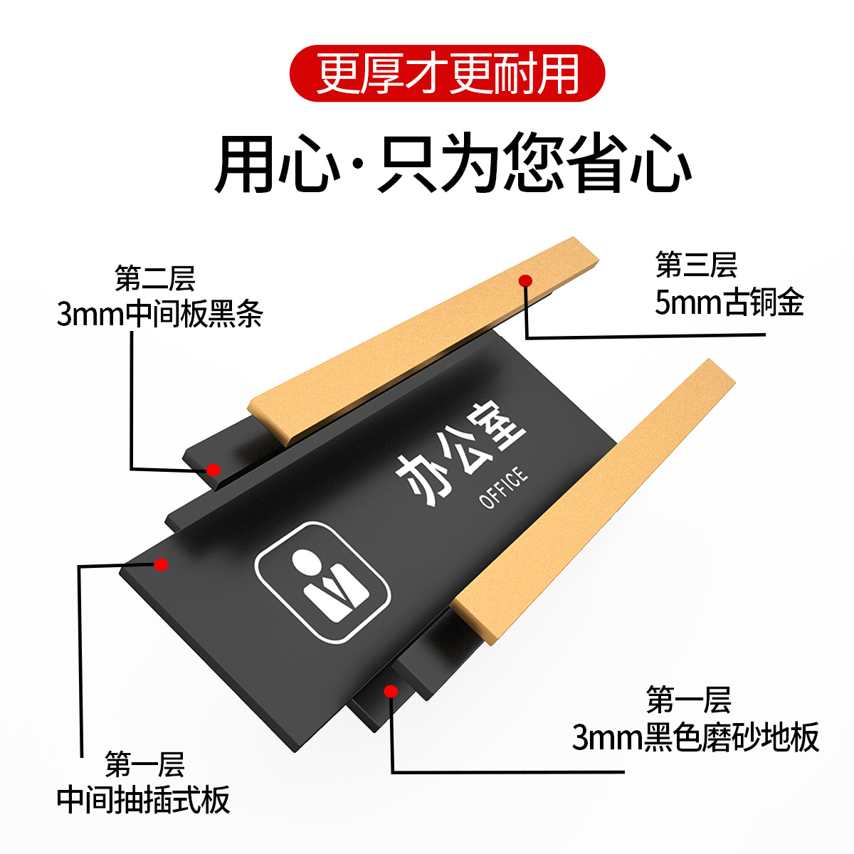 金色磨砂讨论室会议室指示牌办公室门牌部门抽拉可替换标识提示墙贴高档科室牌标志洗手间门贴标牌定制