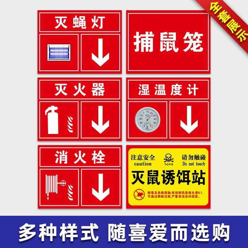灭蝇灯标识牌捕鼠笼灭火器消火栓湿温度计标志牌箭头方向温馨提示