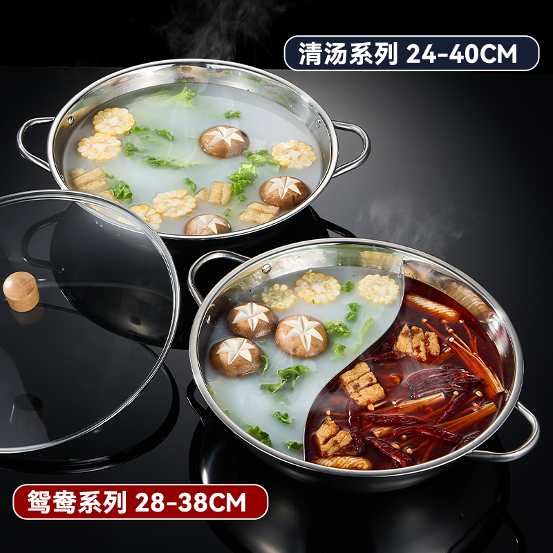 鸳鸯锅火锅家用不锈钢加厚火锅盆电磁炉专用清汤锅商用干锅仔一锅