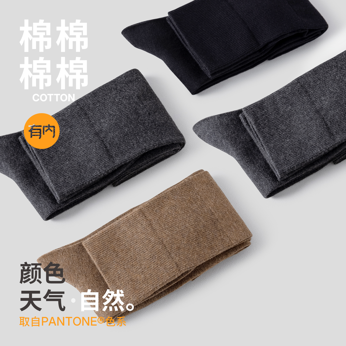 5双装 往往精梳棉质3A抗菌女士袜子中长筒袜纯色休闲男袜秋冬季