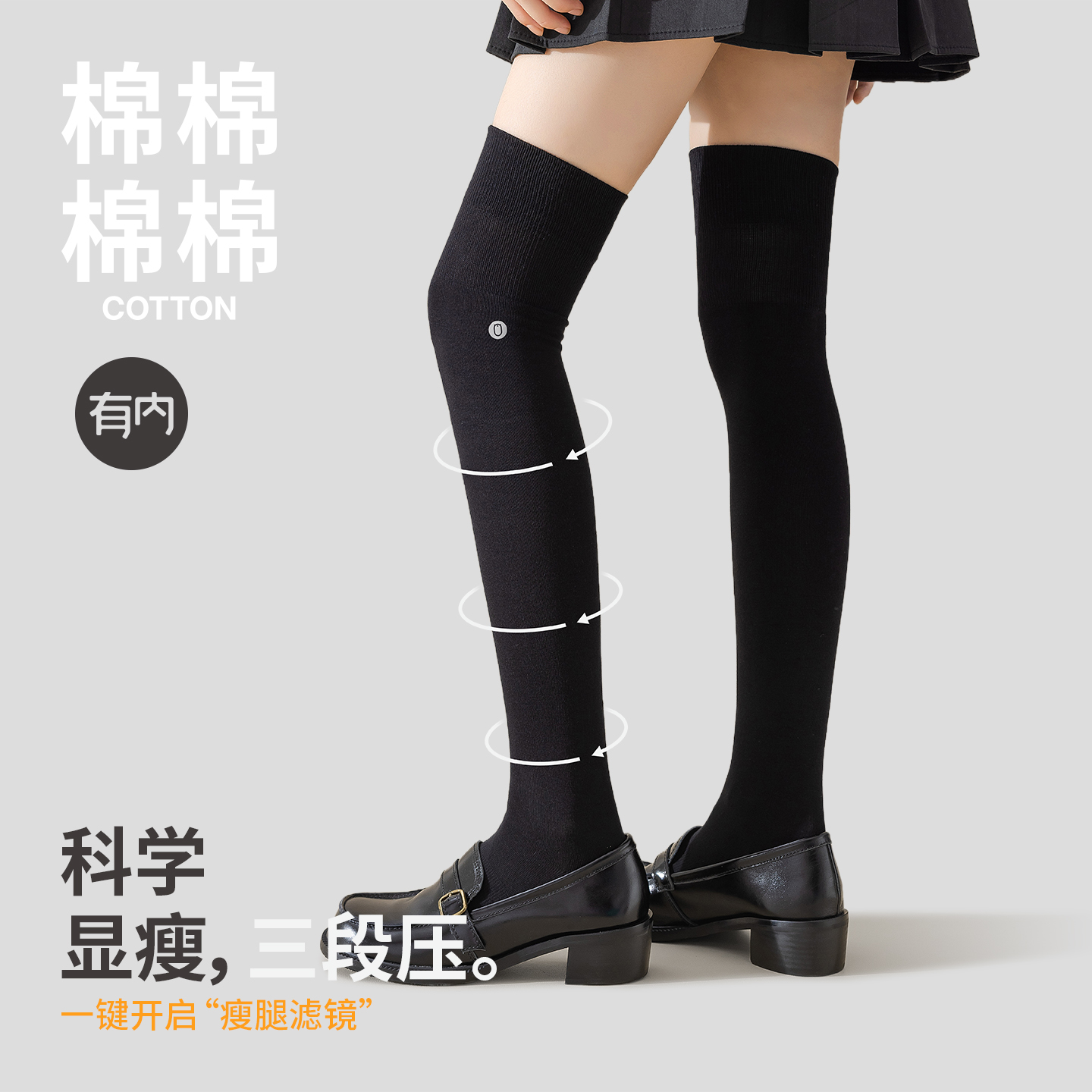 有内压力小腿袜女秋季新款显瘦ins潮长袜jk保暖过膝袜黑色长筒袜