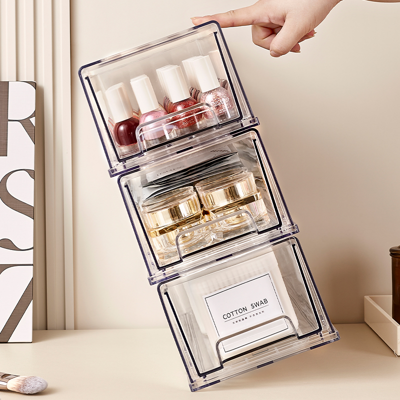 桌面透明亚克力抽屉式收纳盒面膜护肤化妆品杂物收纳筐零食置物架