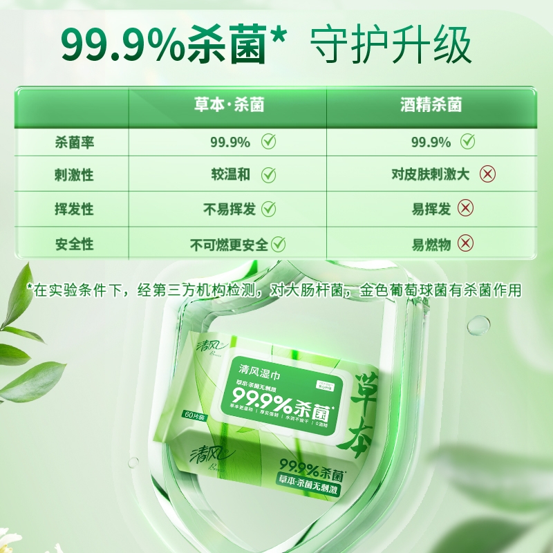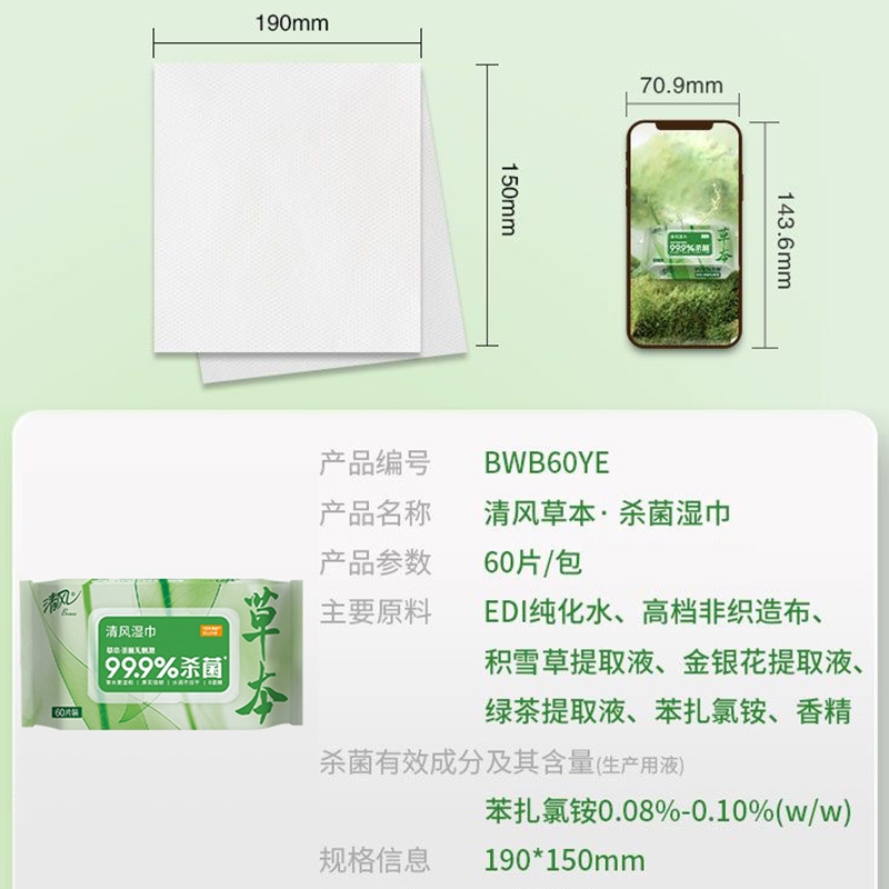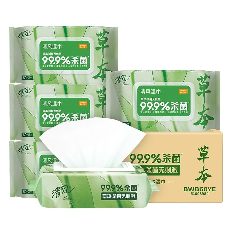 清风湿巾母婴手口屁专用草本杀菌清洁耐用湿巾纸抽家用大包实惠装
