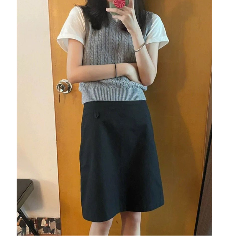 学院风复古a字半身裙女夏季大码小众设计感及膝中裙高腰显瘦短裙