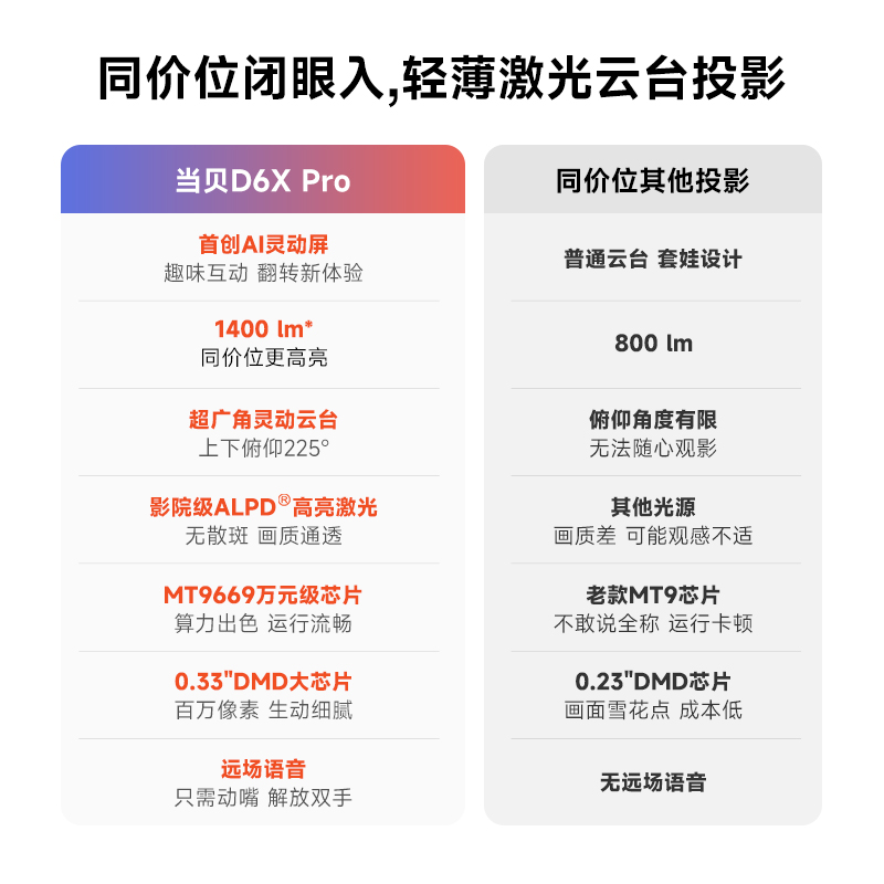 【惊喜价】当贝D6XPro云台投影仪家用超高清轻薄便携 智能投影机激光电视客厅家庭影院