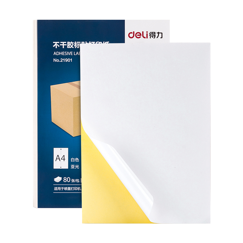 得力A4不干胶标签打印纸黄底哑光面白底哑面空白书写纸牛皮纸喷墨合成纸激光条码打印纸自黏贴整版内分切贴纸
