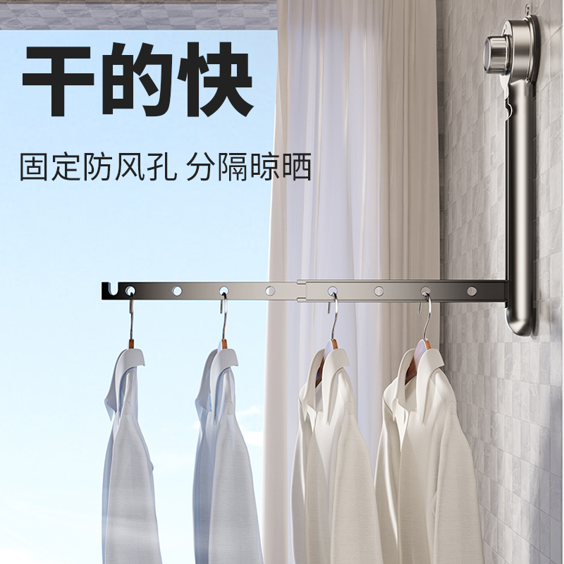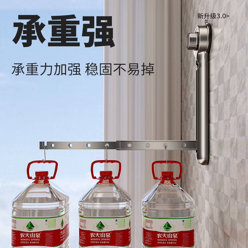 阳台强力吸盘折叠晾晒衣架室内免打孔隐形神器家用晾衣杆飘窗承重