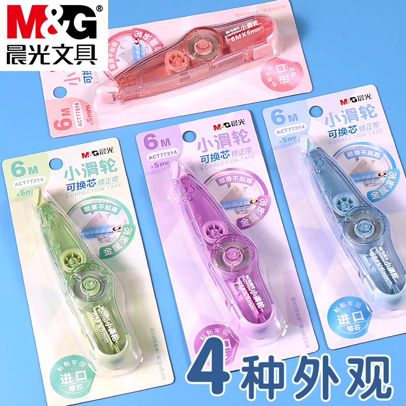 晨光小滑轮可换芯修正带学生用6M金属滚轮带头透明大容量涂改带改正带高颜值可替换芯改字带改错带休正带