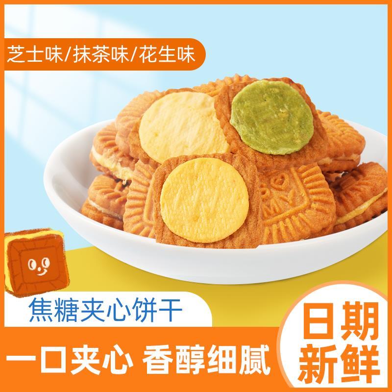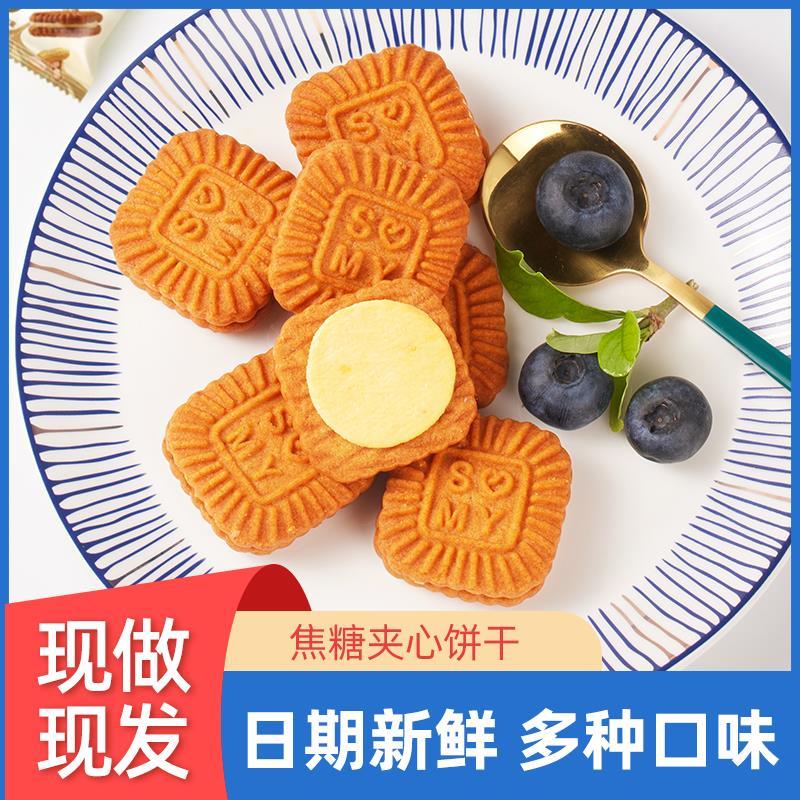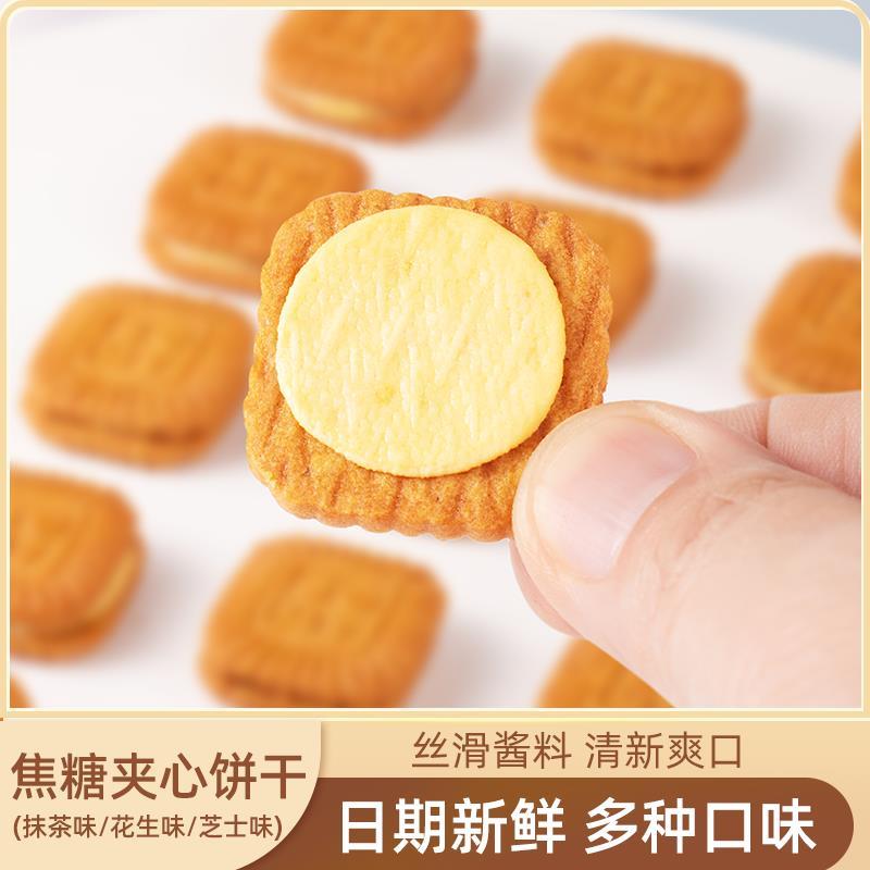 焦糖夹心饼干网红零食方块饼干下午茶点心休闲零食咖啡小吃