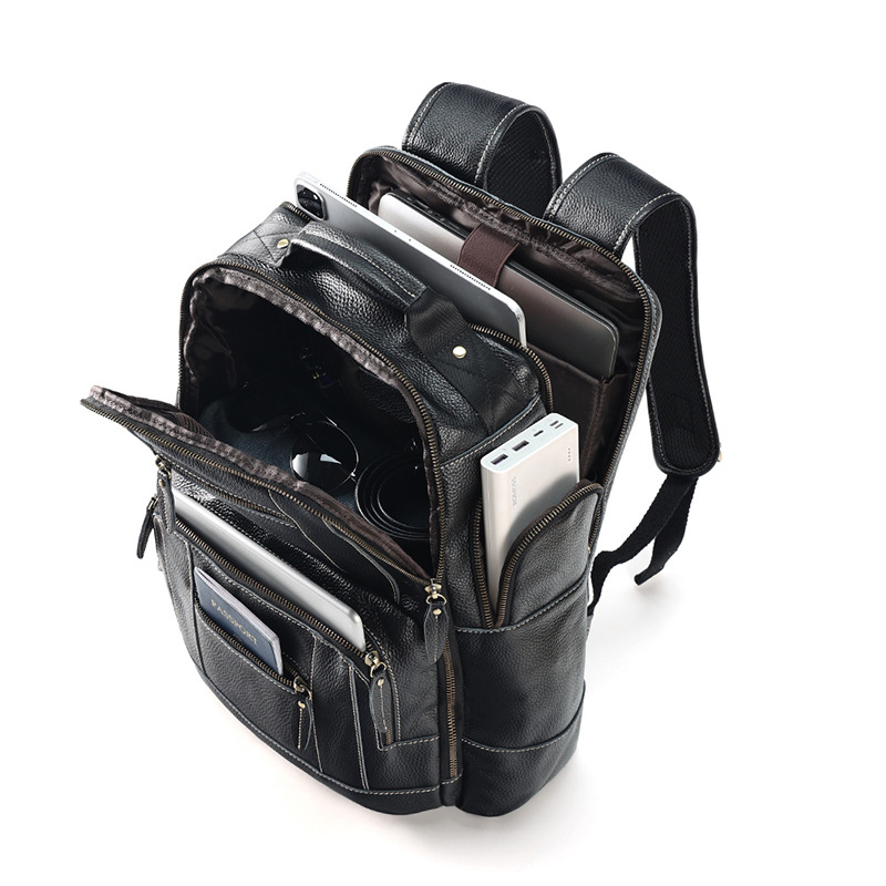 日本品质复古头层牛皮男士大容量双肩背包高级感商务出行电脑包双肩包