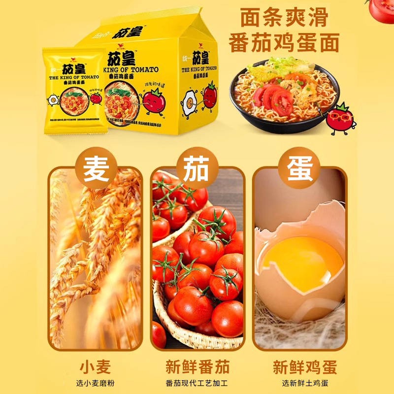 统一茄皇方便面番茄牛肉鸡蛋5连包泡面宿舍免煮冲泡宵夜批发袋装