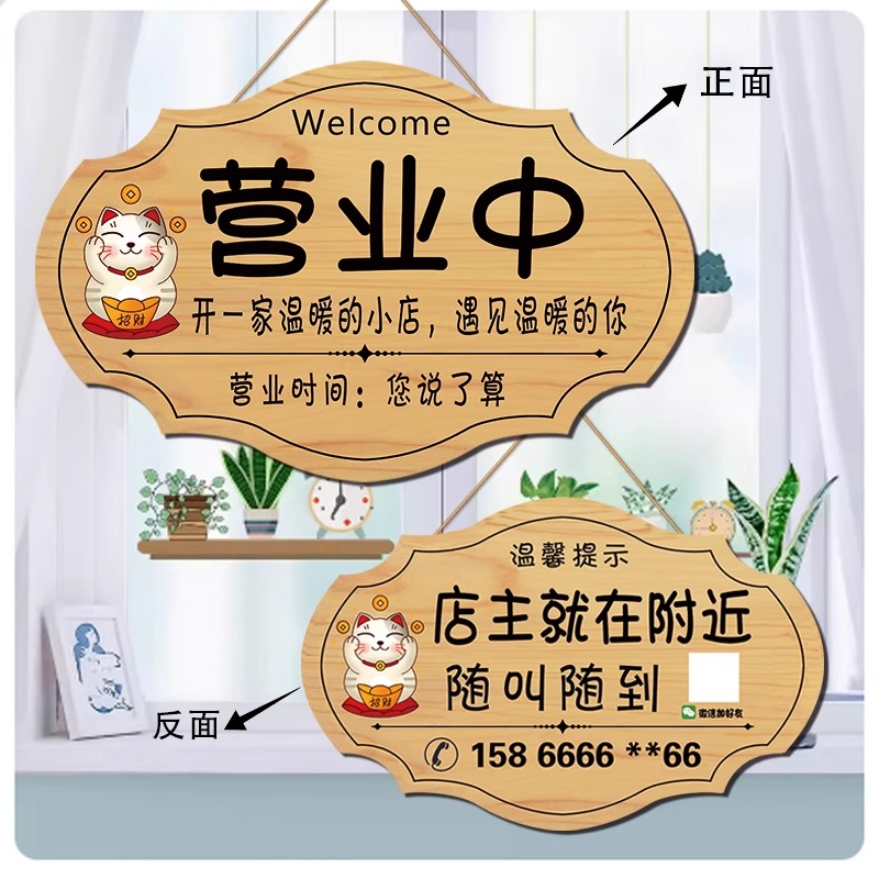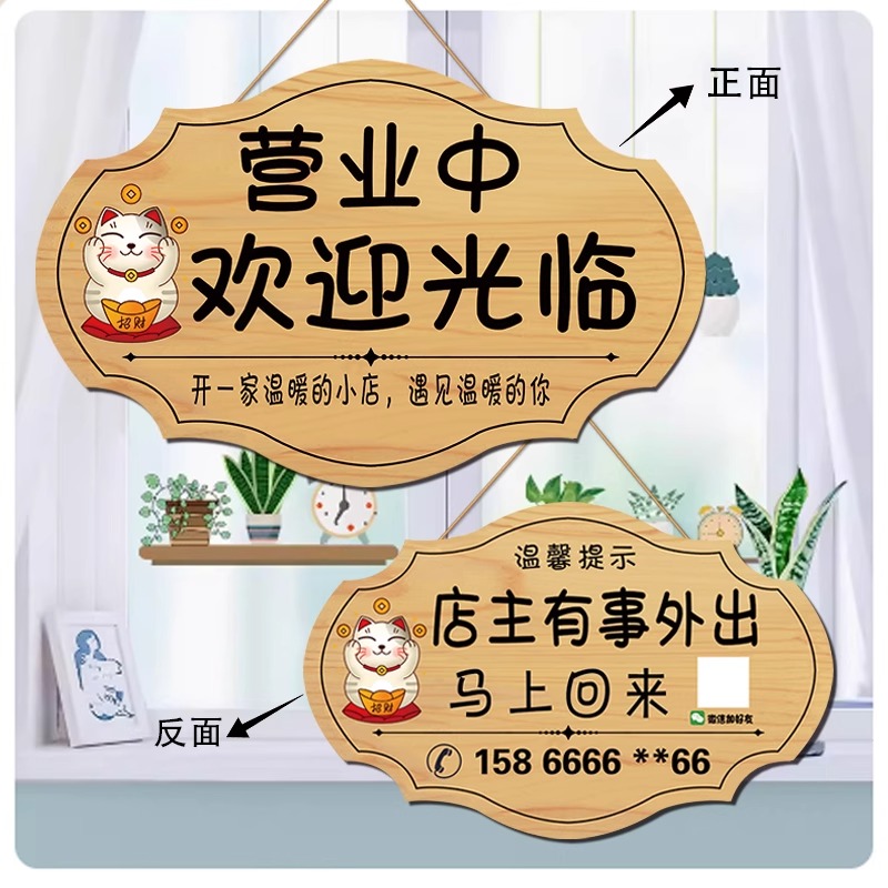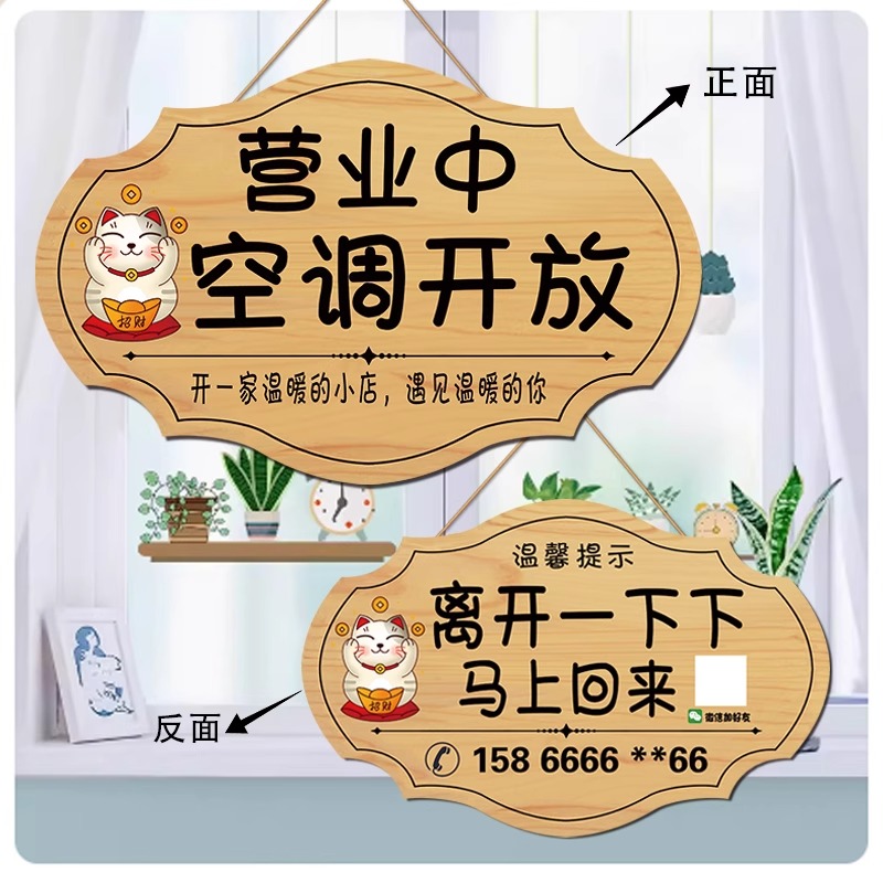 店主就在附近随叫随到挂牌有事外出电话挂牌休息中送货中离开一会马上回来提示牌空调开放正在营业时间告示牌