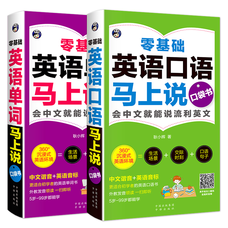 全2册 零基础英语单词+口语马上说 口袋书 自学英语单词速成学习神器会中文就会说英文日常交际英语对话书籍成人初中三四五六年级