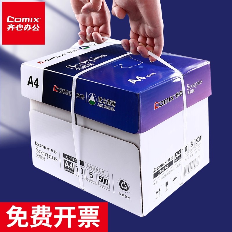 齐心a4纸打印纸银河系复印纸70g一整箱批发10包天蝎座500张加厚双面打印白纸80g打印机a4纸包邮办公商务用纸