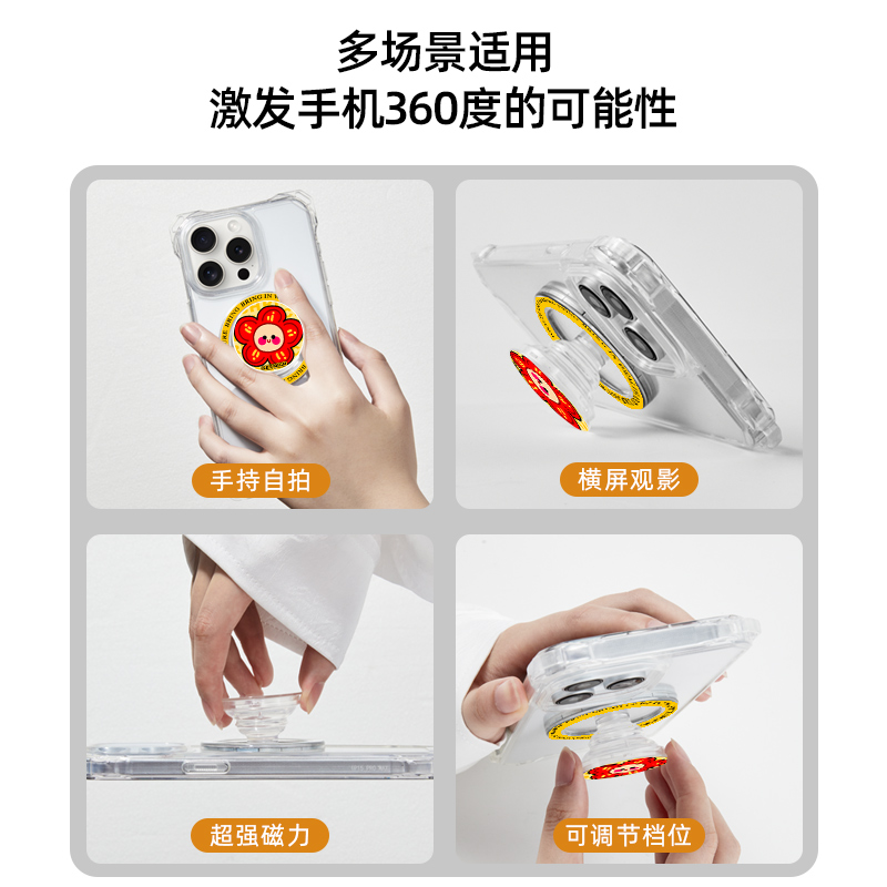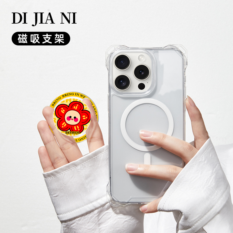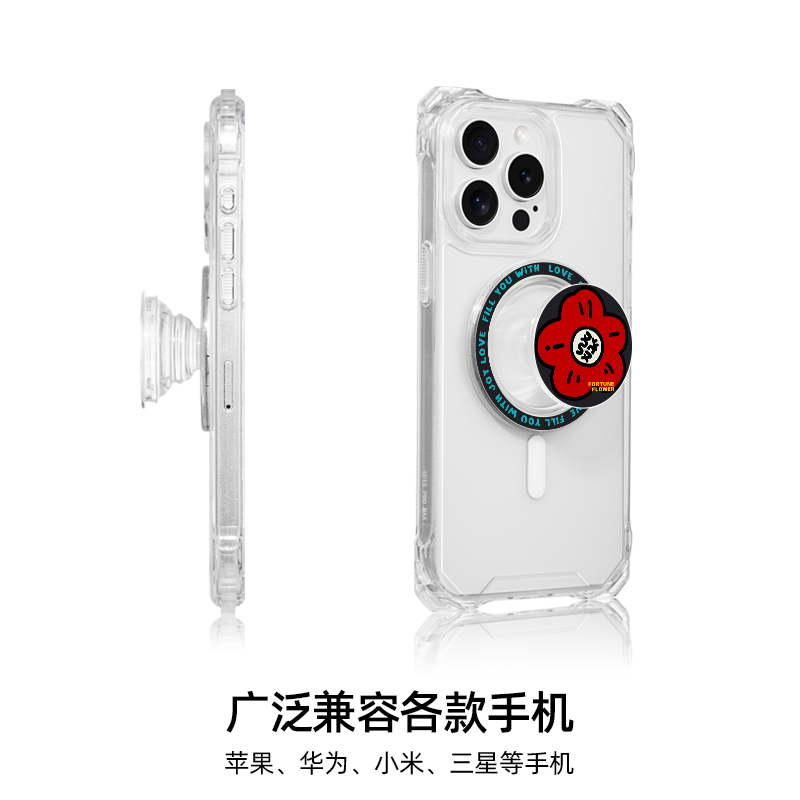 多彩有钱粉花手机支架磁吸新款气囊可折叠支撑强力吸附网红高级配件便携透明强磁背贴桌面可调节伸缩看剧可爱