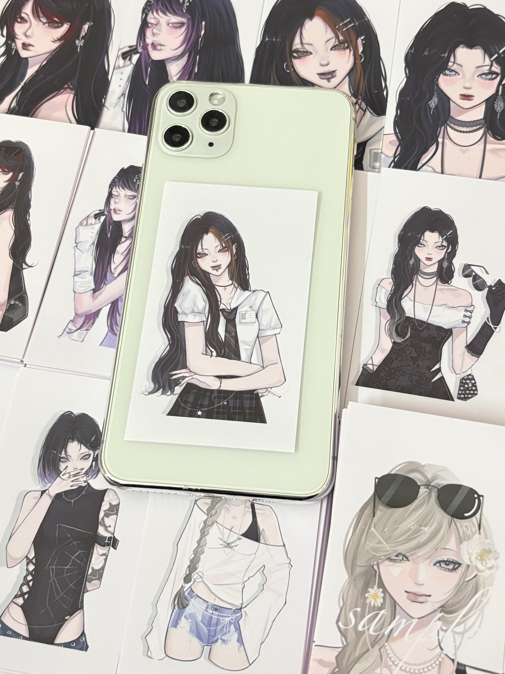 【姐姐团】原创人物贴纸手机尺寸咕卡咕手机背卡咕本diy元素素材