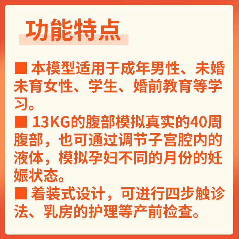 高级着装式孕妇模型40周真实腹部触感可调子宫腔液体四步触诊法乳房护理实训生理体征模拟(胸闷/腰痛/尿频)