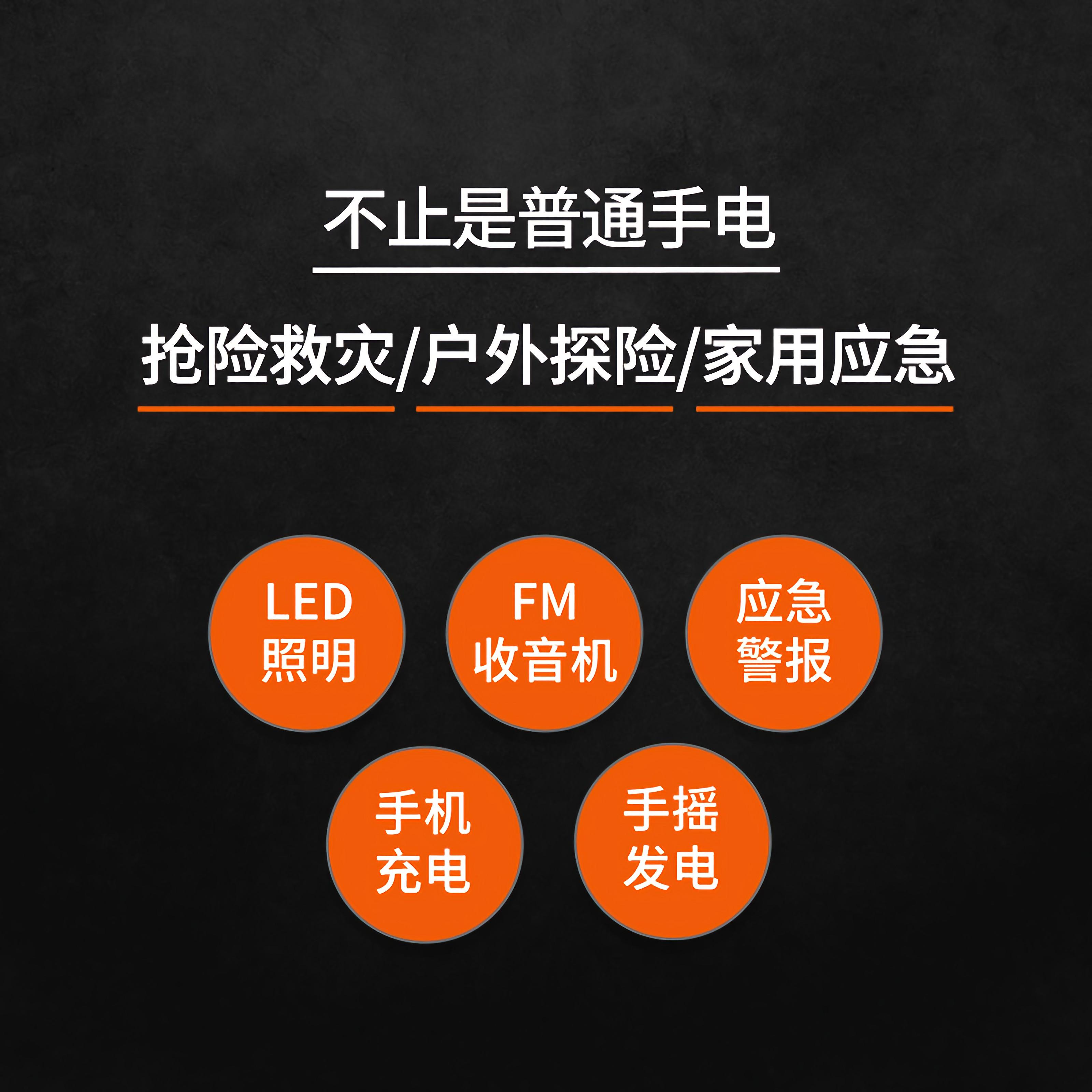 硕而博多功能收音机手摇充电户外应急照明SOS警报应急救援手电筒