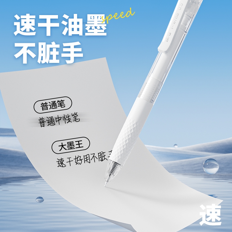 晨光文具中性笔大墨王高速干按动st笔头大容量刷题笔高颜值ins日系黑笔顺滑学生用黑色考试四色神器红色考研