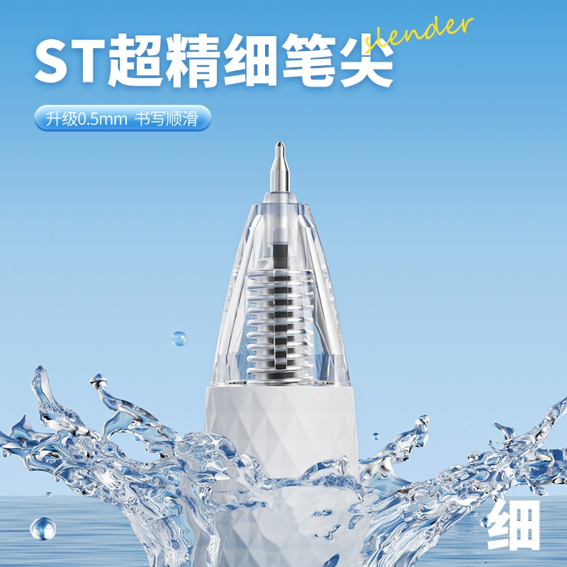 ST刷题笔高颜值按动中性笔圆珠笔黑色水笔小学生专用考试0.5速干碳素笔水性黑笔按压式做笔记签字笔非按斤卖