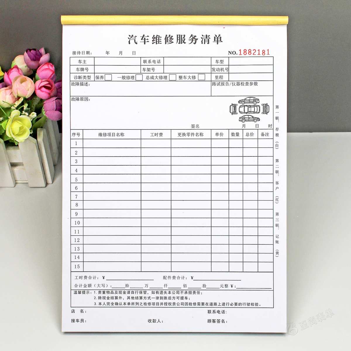汽修厂维修服务清单二联收据汽车修理费明细结算单据接车单定制