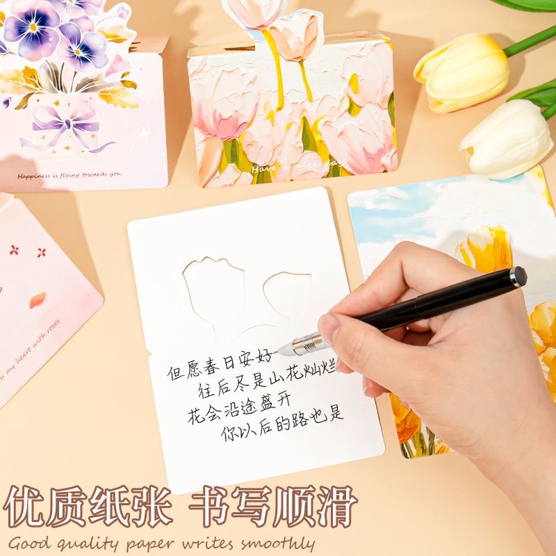 生日贺卡教师节创意立体干花手写折叠小卡片纸送女友男生情书情侣浪漫表白情人节礼物花束祝福留言小众明信片