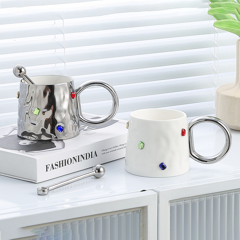 轻奢高级感小众设计宝石马克杯家用杯子陶瓷高颜值办公室情侣对杯
