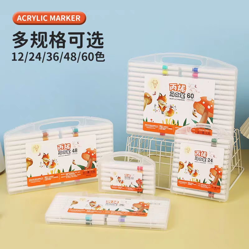 60色48色大容量丙烯马克笔盒装儿童专用可叠色不透纸幼儿园学生版软头丙烯笔可水洗水性水彩笔小孩画画笔