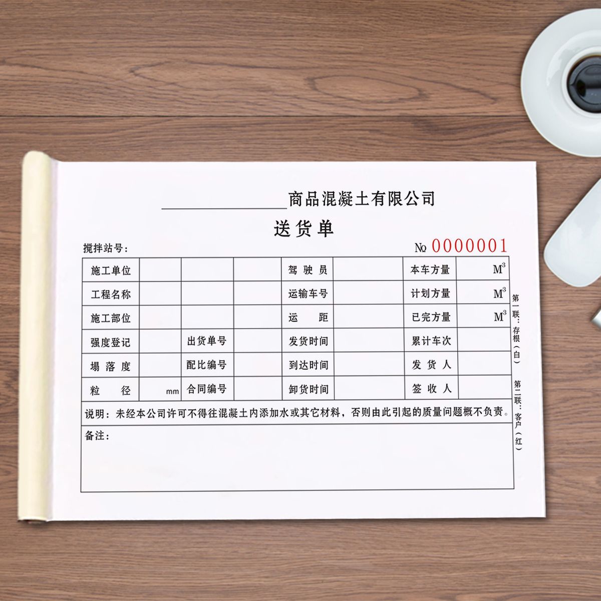 2本包邮搅拌站混凝土公司通用混凝土送货清单工程用量方量结算单搅拌车装货记录送货清单方数结算记账