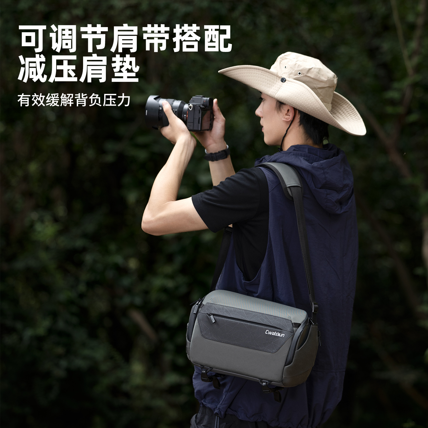 Cwatcun香港品牌多用途通勤单反相机包男便携适用于佳能尼康索尼单肩斜挎相机包大容量休闲旅行包