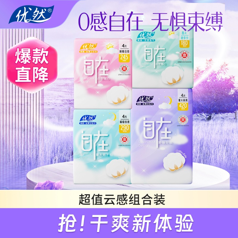 优然180mm卫生巾组合学生姨妈巾迷你私处夜用自由日用护翼日夜