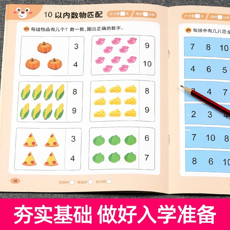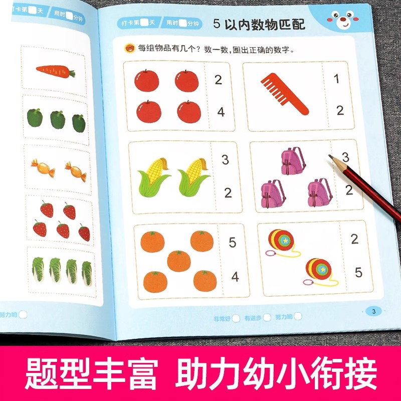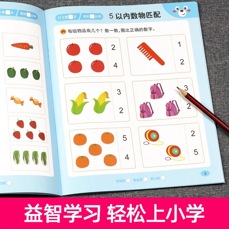 每日一练幼儿数学启蒙练习册数感早教书幼小衔接思维训练教材10以内加减法全套训练幼儿园小中大班儿童认识数字练习拼音识字口算