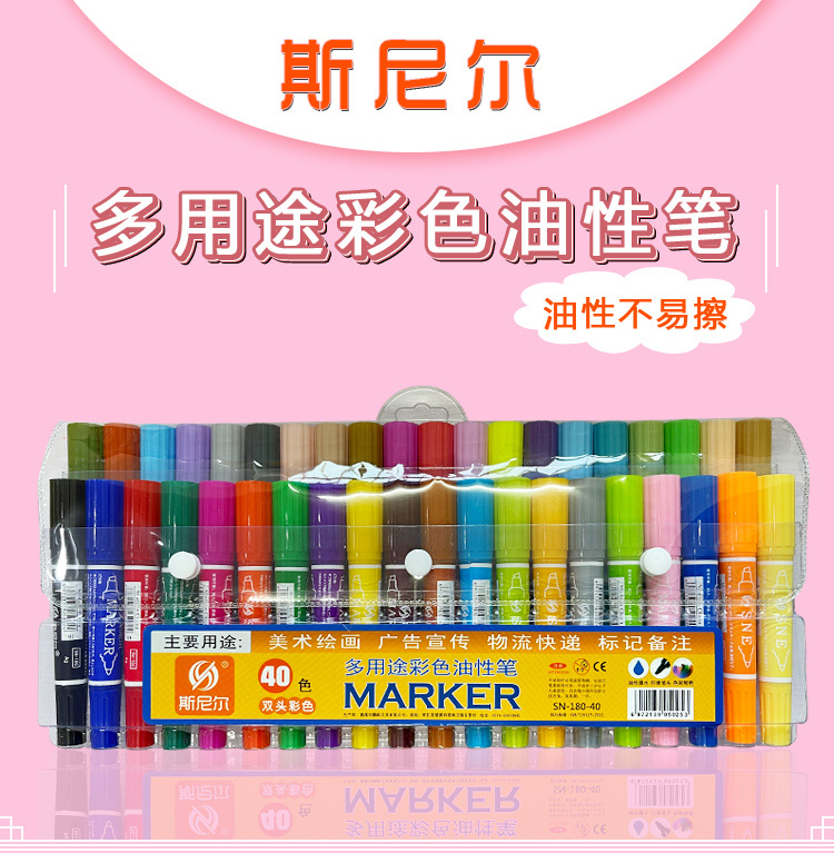 斯尼尔彩色油性马克笔套装海报笔美术搭配收纳盒单支自选可加墨12色24色30色40色64色学生黑色文具pop笔