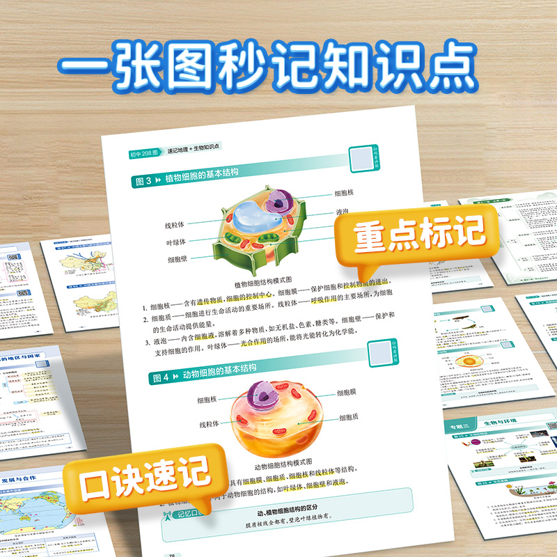 【易蓓教辅】初中地理生物208图速记知识点默写七八年级生地会考图文详解笔记图解必考知识思维导图考点归纳复习资料历史