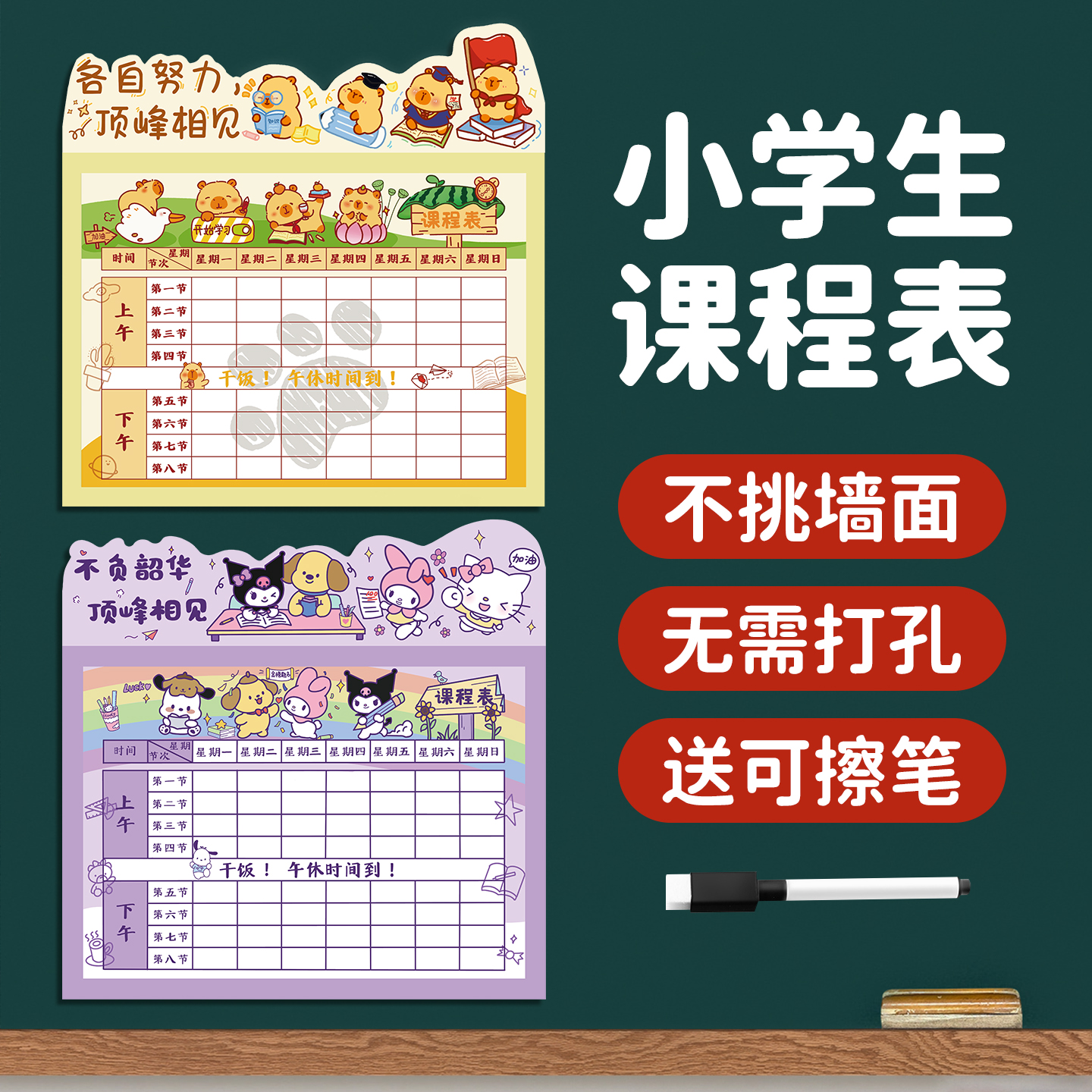 磁性框可擦课程表墙贴小学生家用一年级学生磁吸A4课程表磁性贴神器磁性班级反复使用免打孔自粘库洛米课程表