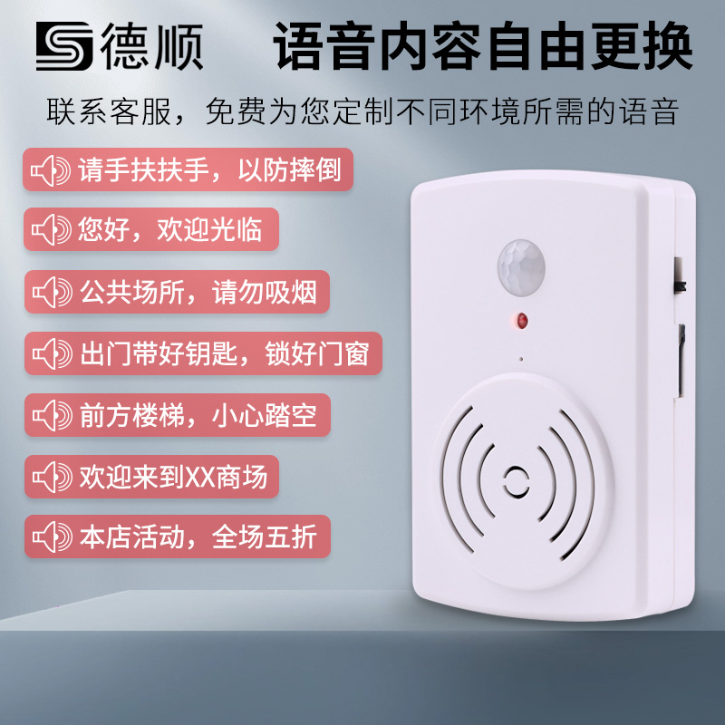 德顺1818T上下楼梯语音提示器小心台阶电梯扶梯进门门铃感应喇叭