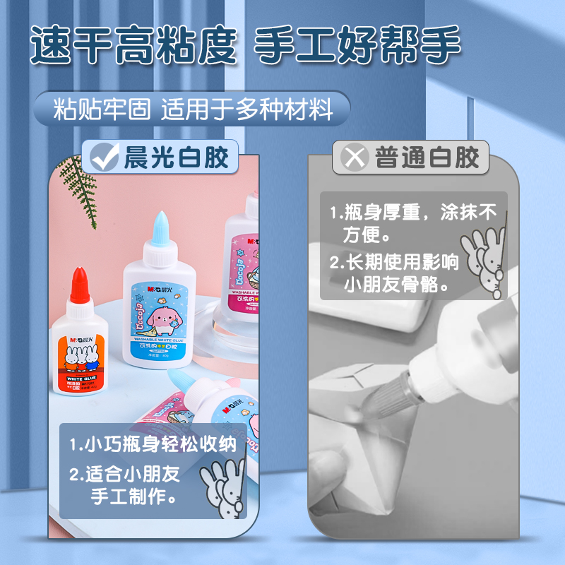 晨光白胶白乳胶儿童做手工用安全无毒速干胶水可黏纤维可水洗diy模型胶高粘度幼儿园手工课专用强力粘液体胶
