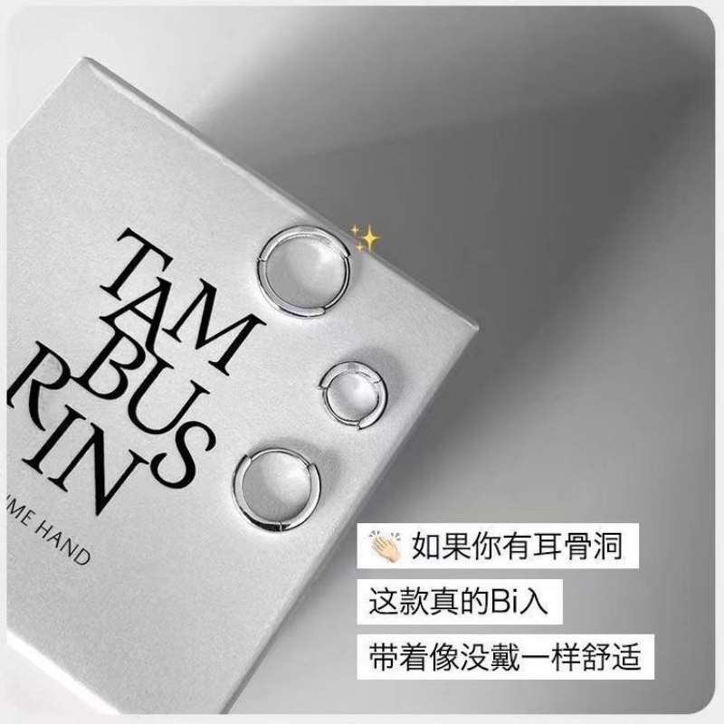 S999纯银耳环耳圈耳骨钉养耳洞耳骨环高级感素圈耳扣耳钉女耳饰男