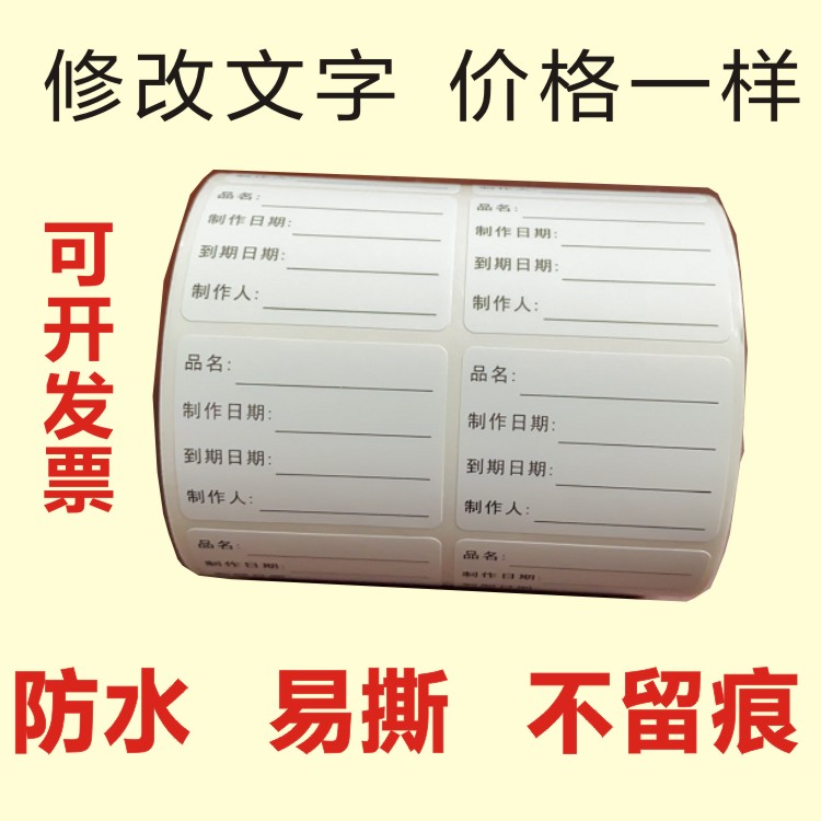 防水效期标签贴开封冷藏保质期食品生产日期标签品名制作时间条贴