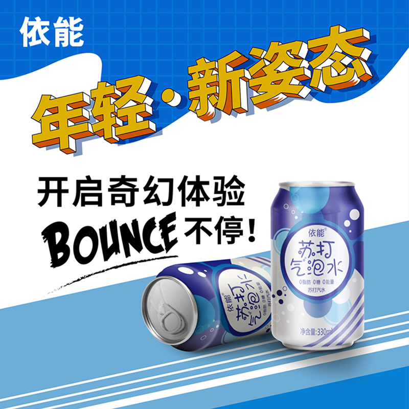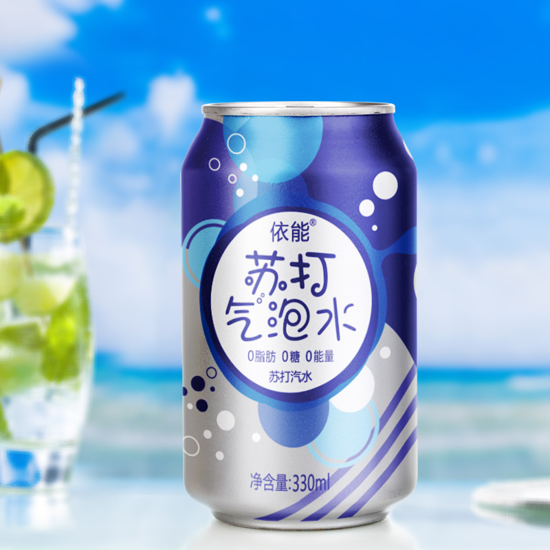 依能苏打水饮料0糖0脂0卡原味香草柠檬味无糖苏气泡水24罐装