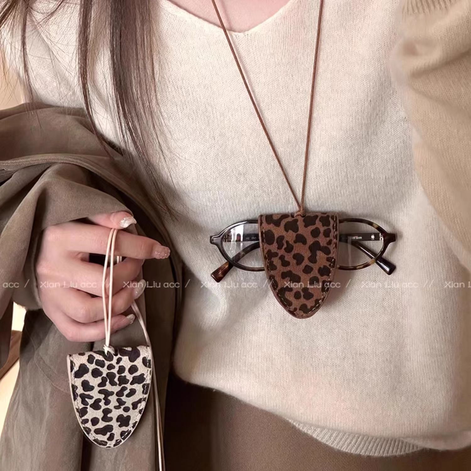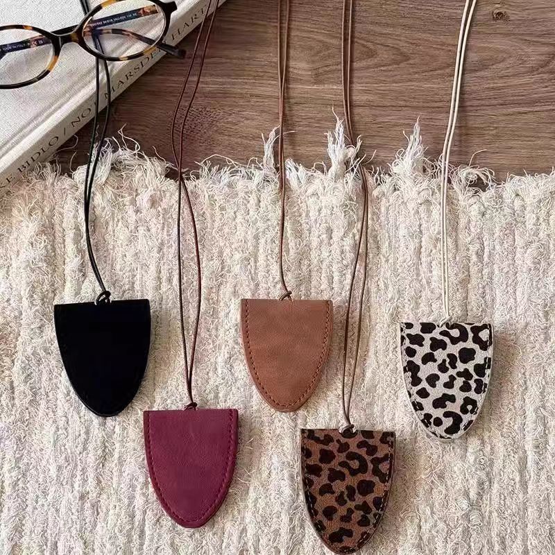 秋冬豹纹皮革挂脖多功能墨镜夹眼镜链收纳项链女款挂绳毛衣链配饰