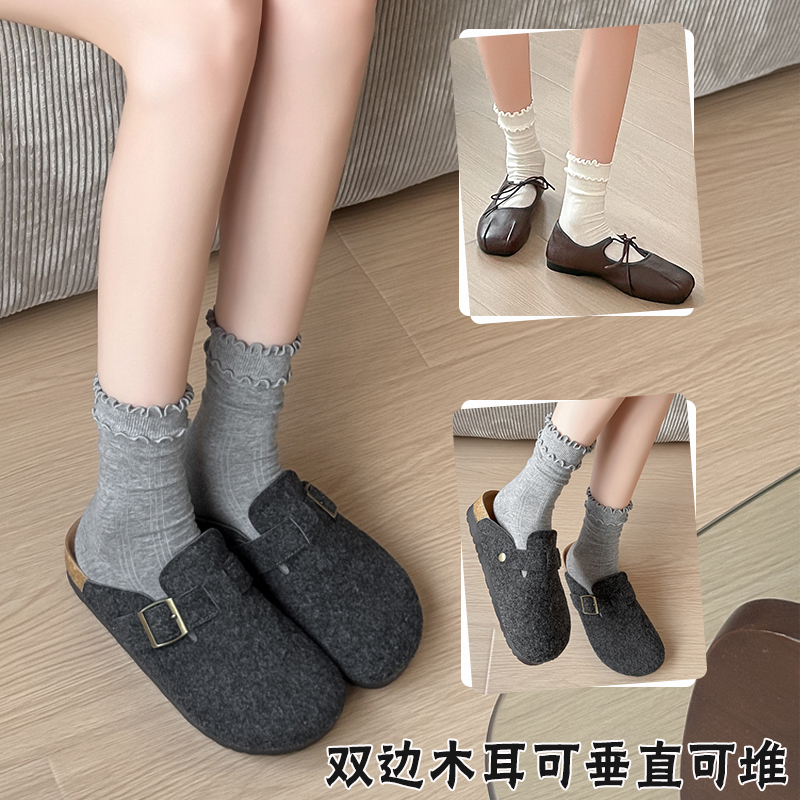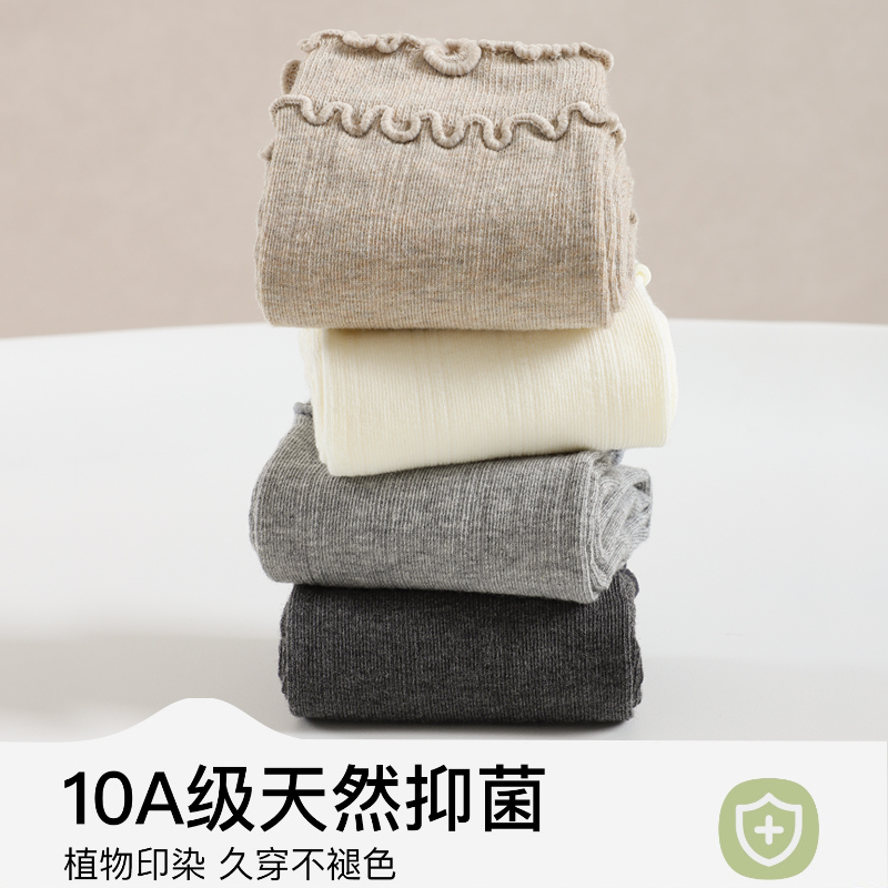 【10A抗菌】木耳边袜子女春秋款纯棉中筒堆堆袜白色无骨长筒袜子