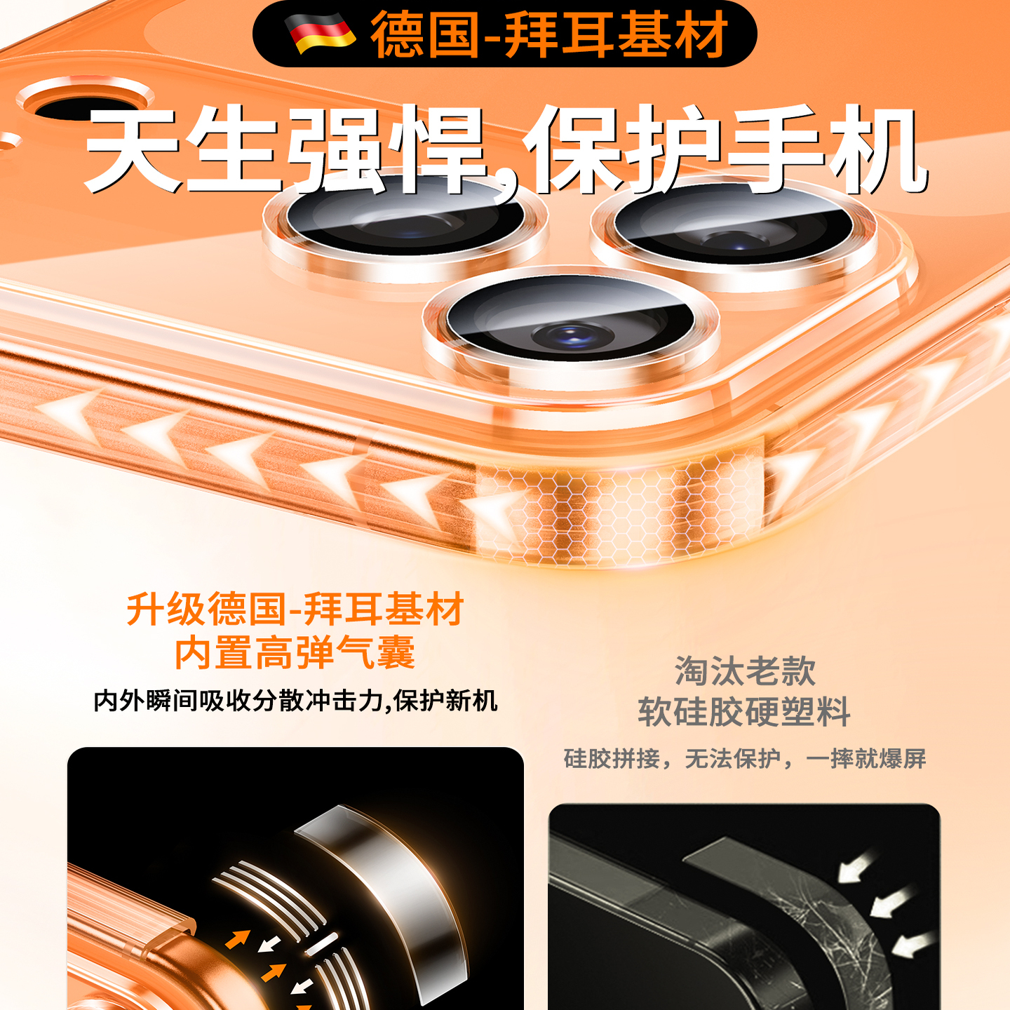 [拜耳防摔]第一卫适用苹果17promax手机壳iPhone15新款16硅胶13透明14情侣12镜头全包17高级感XR女plus保护套