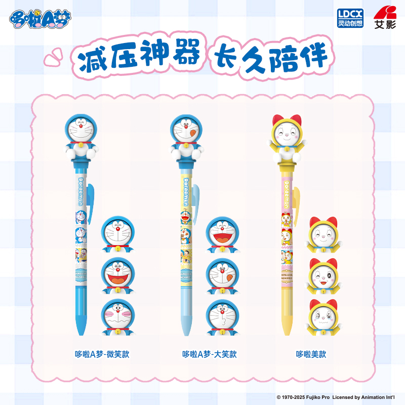 灵动创想哆啦A梦变脸笔按动中性笔0.5mm速干顺滑黑色笔叮当猫机器猫签字笔学生用品文具动漫周边解压笔