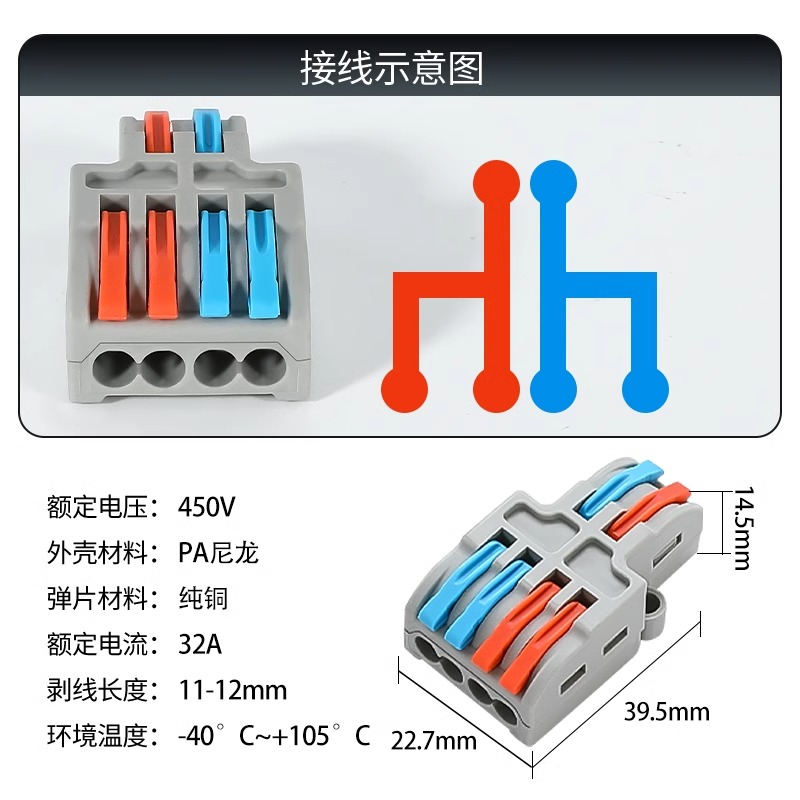 SPL灯具电线连接器多功能快速接线端子导线分线并线器二进二出