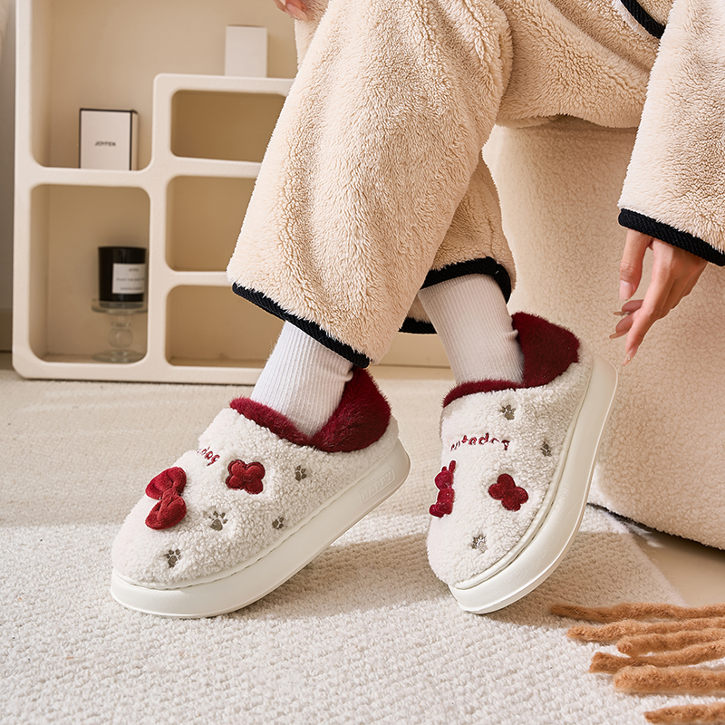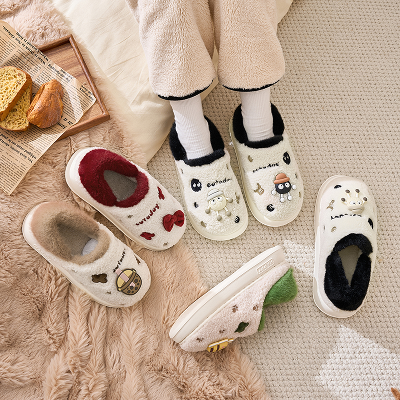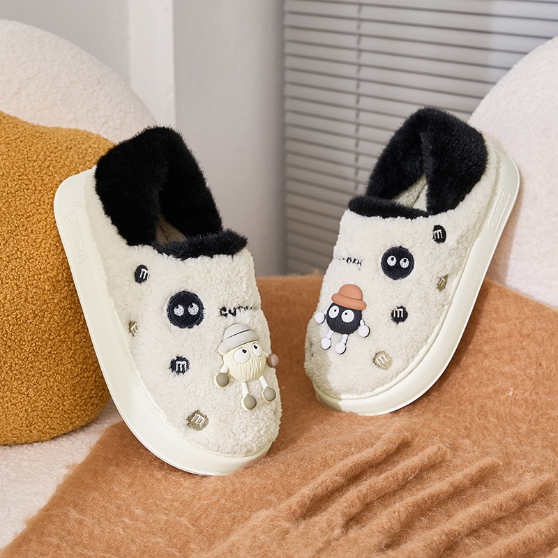 可爱煤球棉拖鞋女冬防滑加绒加厚居家保暖外穿踩屎感男秋冬后跟