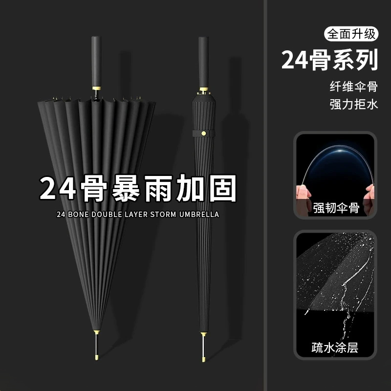 24骨超大长柄雨伞男士大号自动加固暴雨结实抗风黑色商务直杆雨伞