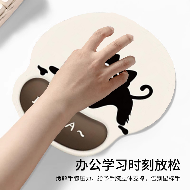 可爱黑猫护腕鼠标垫防滑耐磨软垫办公娱乐加厚鼠标护腕垫防腱消炎