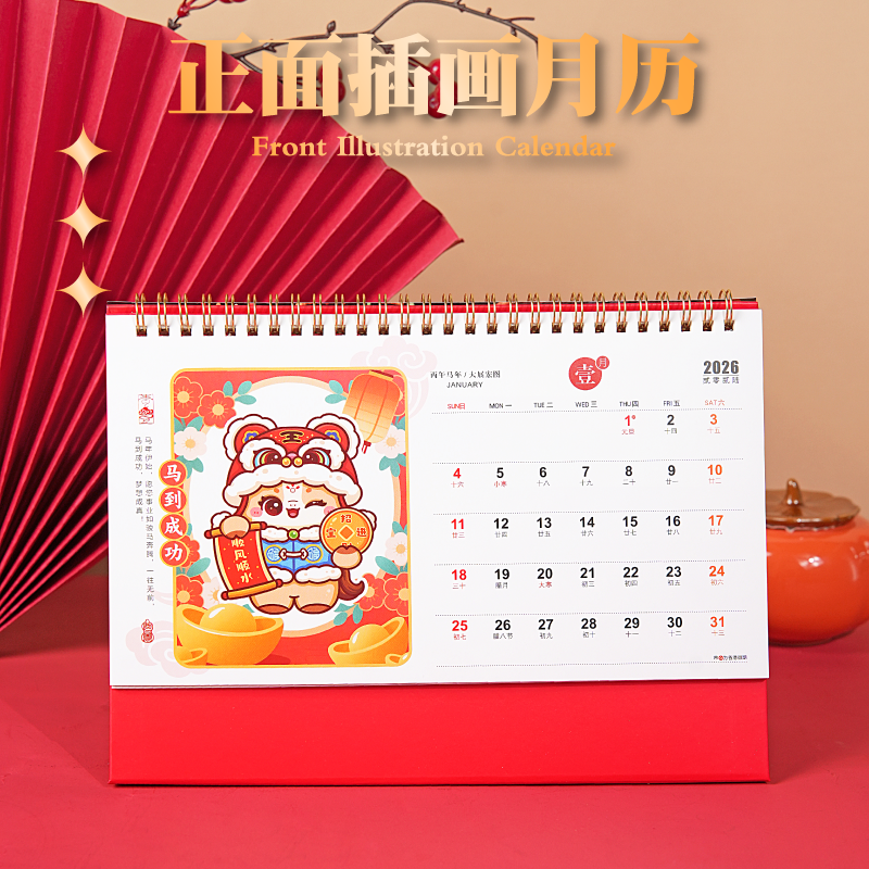 得将 2026年插画中国风台历创意桌面摆件月历自律打卡计划本日历学校企业可定制logo