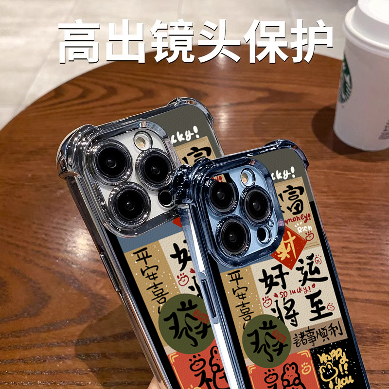 好运将至气囊防摔适用苹果17promax手机壳iphone16plus软套电镀15pm文字中国风14硅胶全包15pro女xs xr12定制